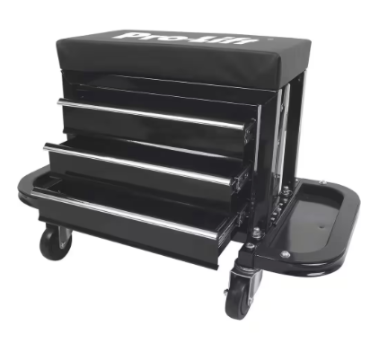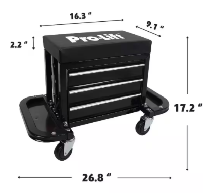 - 【COMFORTABLE WORKSPACE AND CONVENIENT STORAGE】Pro-Lift C-3300 offers a 2-in-1 solution, combining comfort and convenience for your automotive projects. This versatile rolling chest features 3 tool drawers, equipped with a fully padded vinyl-lined seat and 4 swivel casters, providing a comfortable workspace while doubling as a convenient storage solution.