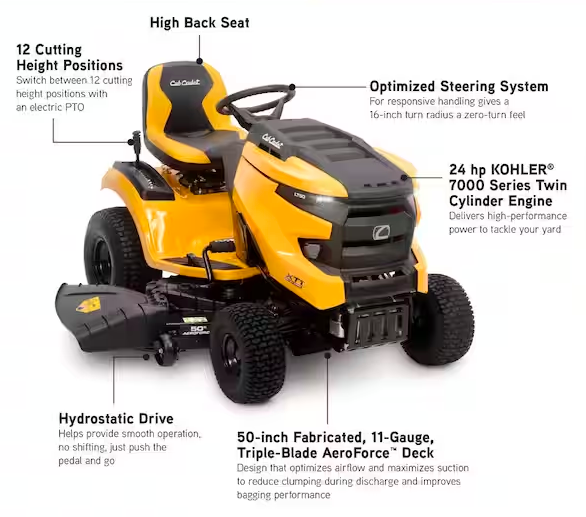 - 24 HP/725 cc twin-cylinder Kohler engine delivers high-performance power to tackle your yard