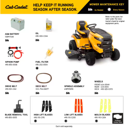 - For questions about service and repair, please call the Cub Cadet customer service line (877)-428-2349, or reference the Service & Repair Document