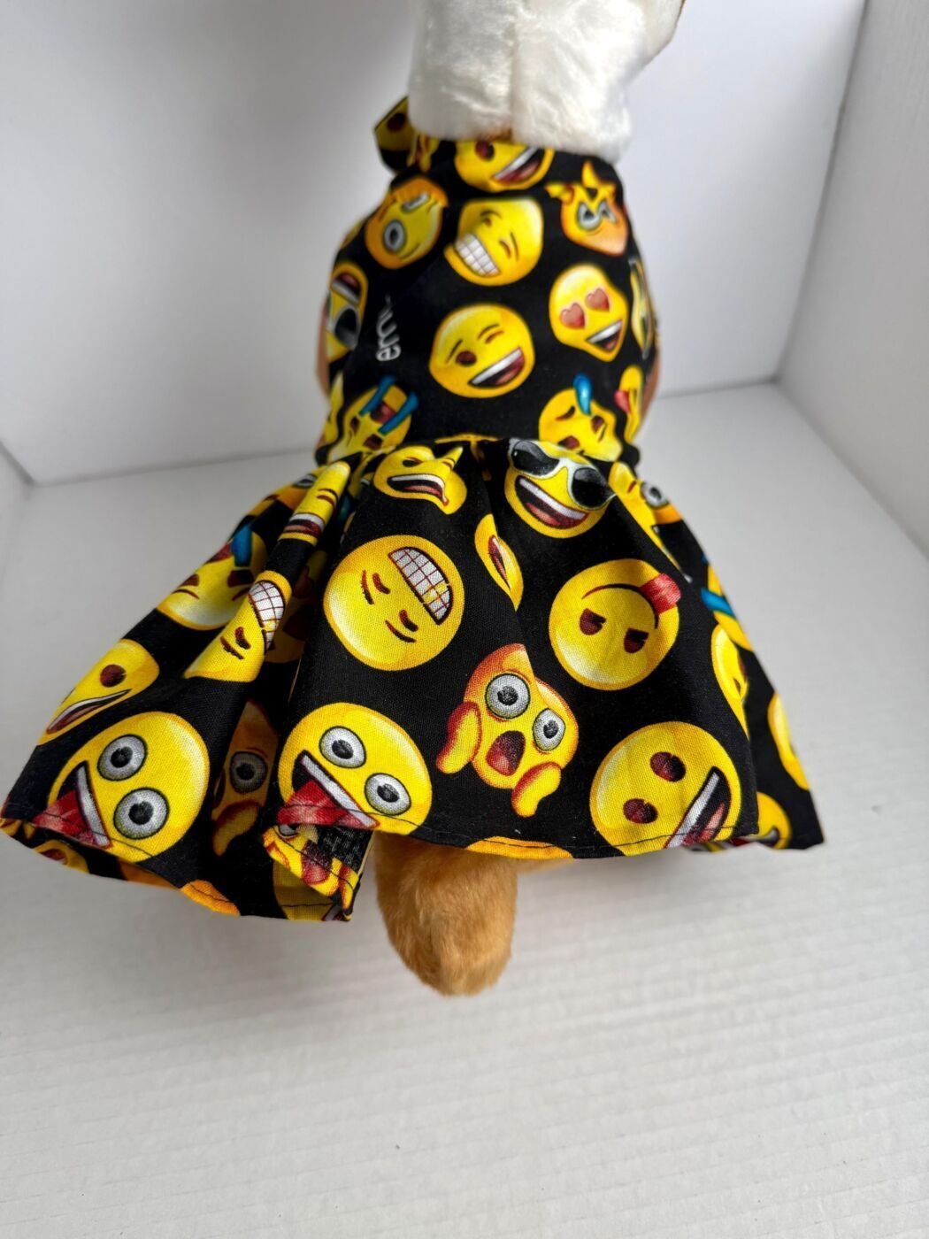 Handmade Cotton Dog Dress – Emojies Puppy Outfit, Size Small