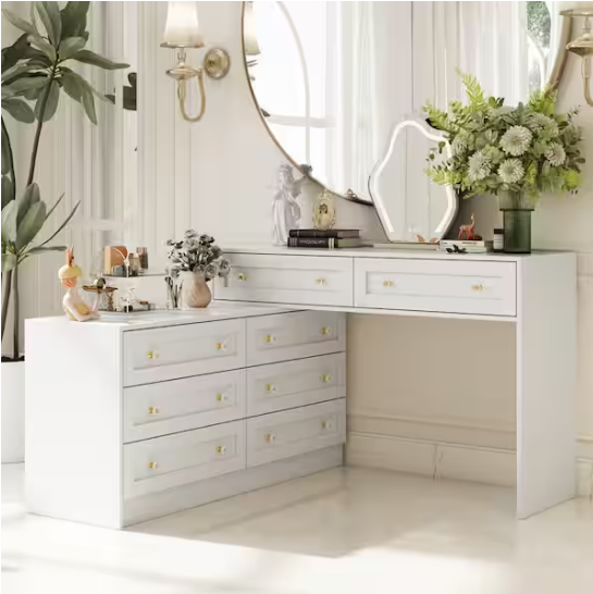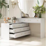 - Dresser can be placed according to the room design and layout, with a rotatable and retractable countertop, the rotary table is not fixedly connected to the countertop and can be disassembled at will, it’s easy to change a variety of patterns according to the apartment type