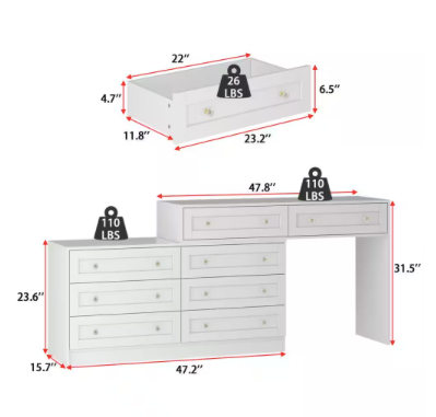 - Crafted from thicker MDF board, ensures stability and durability coated surface makes this-dresser easy to clean and dry out