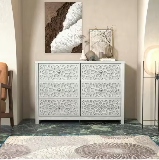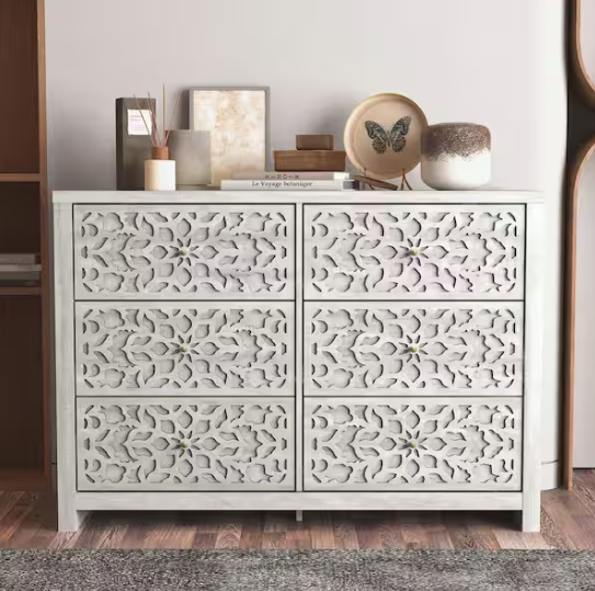 Introducing the Avora 6-Drawer Dresser: Immerse yourself in the epitome of bedroom luxury with Avora. This dresser stands as a testament to timeless design, seamlessly merging functionality with an aesthetic that transcends ordinary furniture. Avora offers six generously sized drawers, providing ample storage space while maintaining an air of sophistication. The sleek white finish and impeccable wood craftsmanship make this dresser a visual masterpiece, effortlessly enhancing the ambiance of your bedroom.