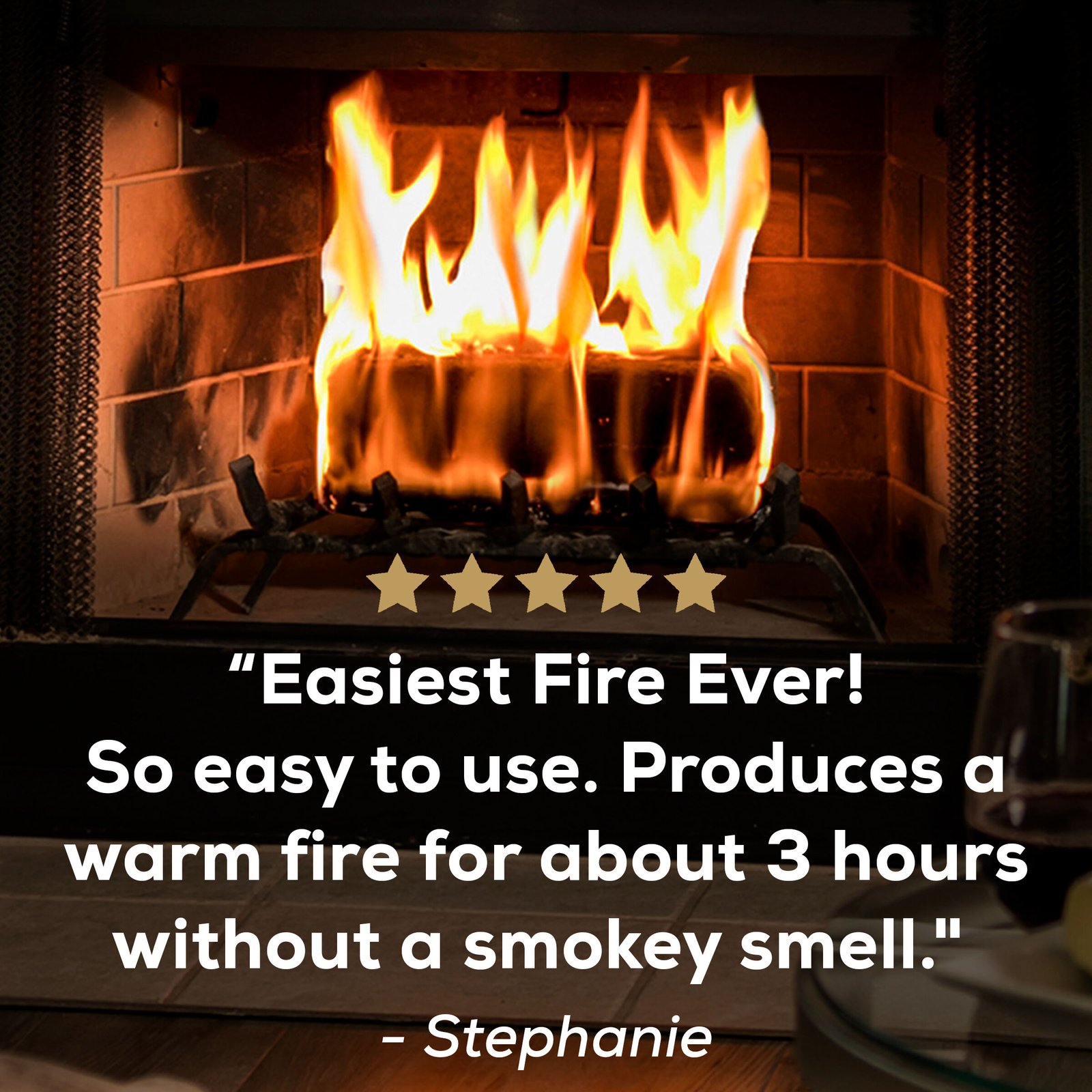 - Produces bigger, brighter flames than regular firelogs
