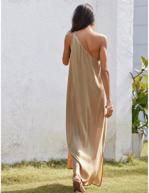 Be the first to review “Loose Sleeveless One Shoulder Split Maxi Dress”