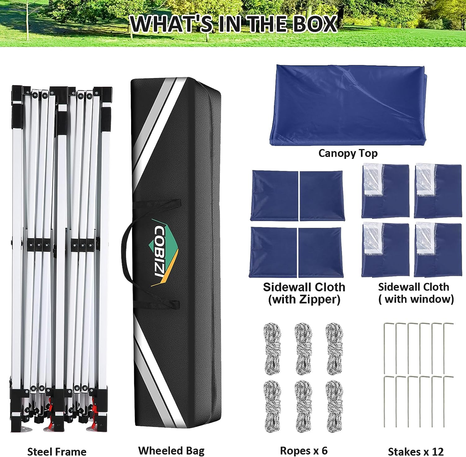 【Sturdy Frame & Durable Fabric】This pop up canopy with sturdy full truss structure design, made of thick steel frame with anti-rust powder coating. The canopy top is made of 210D oxford fabric with premium UV coating and be attached with waterproof strips, standard UPF 50+ that blocks out 99% harmful UV and water.