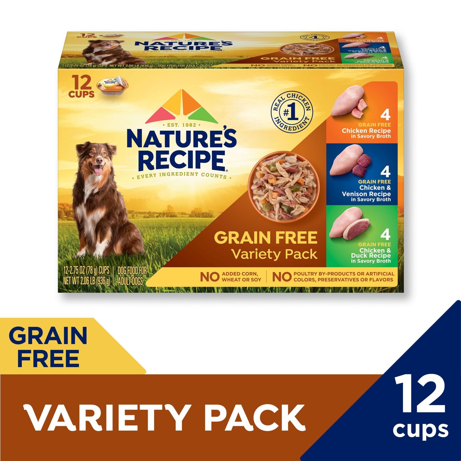 • Contains twelve (12) 2.75-ounce cups of Nature’s Recipe grain free dog food