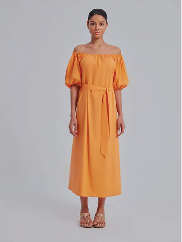 Puff Sleeve Off Shoulder Midi Dress