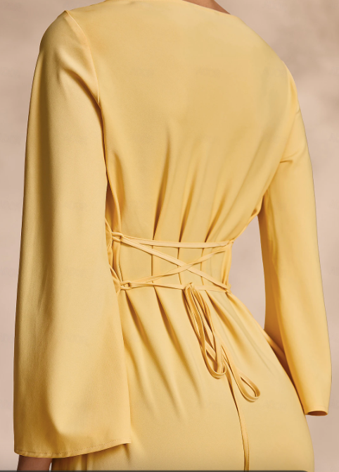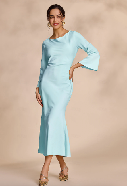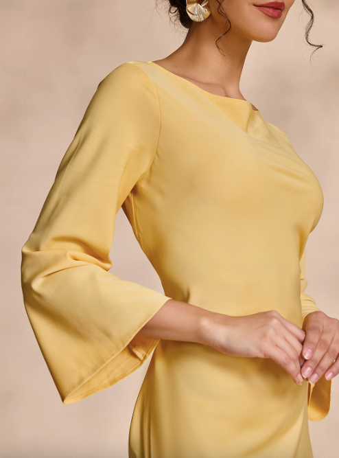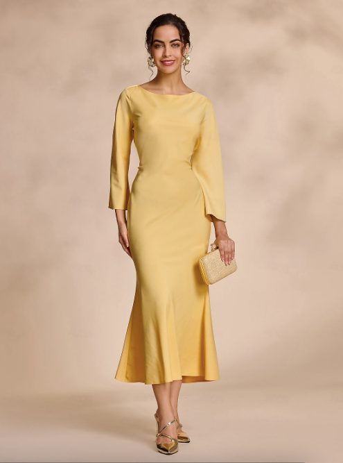 Boat neck bell sleeve hip-hugging fishtail dress